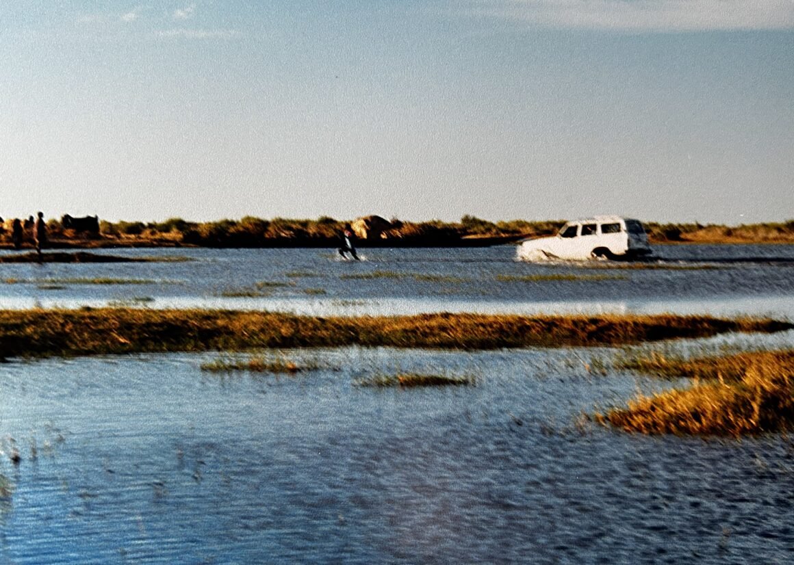 We followed. The engine groaned as we plunged into the water. Waves sloshed over the bonnet, windscreen wipers sprang into life, and I clung on, eyes fixed on the car ahead.